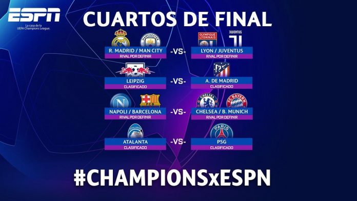 Después, para las semifinales, chocarán el ganador de la Juventus-Lyon, Manchester City-Real Madrid ante el vencedor del Barcelona-Napoli o el Bayern Munich-Chelsea. En tanto que la otra semifinal será el ganador del Leipzig-Atlético de Madrid ante el ganador del Atalanta-PSG.