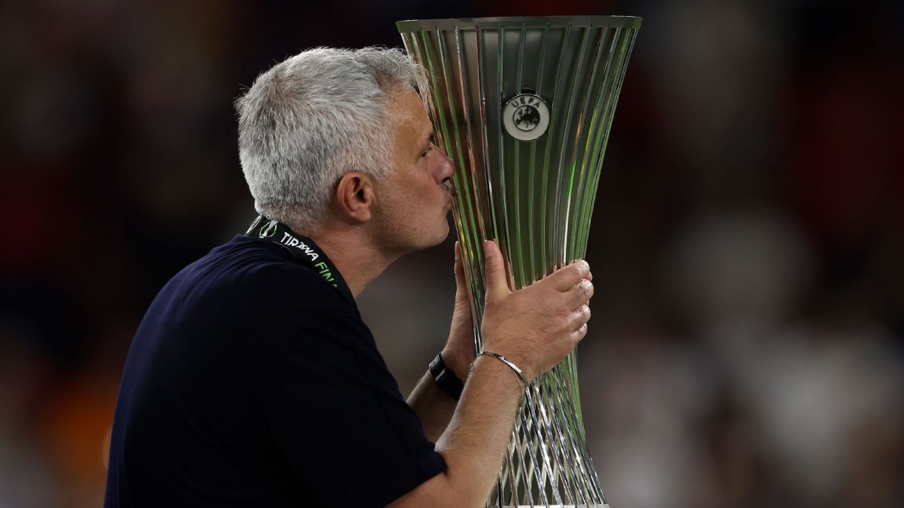 ROMA — José Mourinho lo ha vuelto a hacer. El portugués ha levantado un nuevo título europeo, la Liga Conferencia, después de vencer al Feyenoord neerlandés por 1-0 en Tirana, lo que le acredita como el primer técnico en levantar este trofeo y el primero en proclamarse campeón de Liga de Campeones, Liga Europa y Liga Conferencia, las tres competiciones europeas que se disputan durante el transcurso de la temporada.