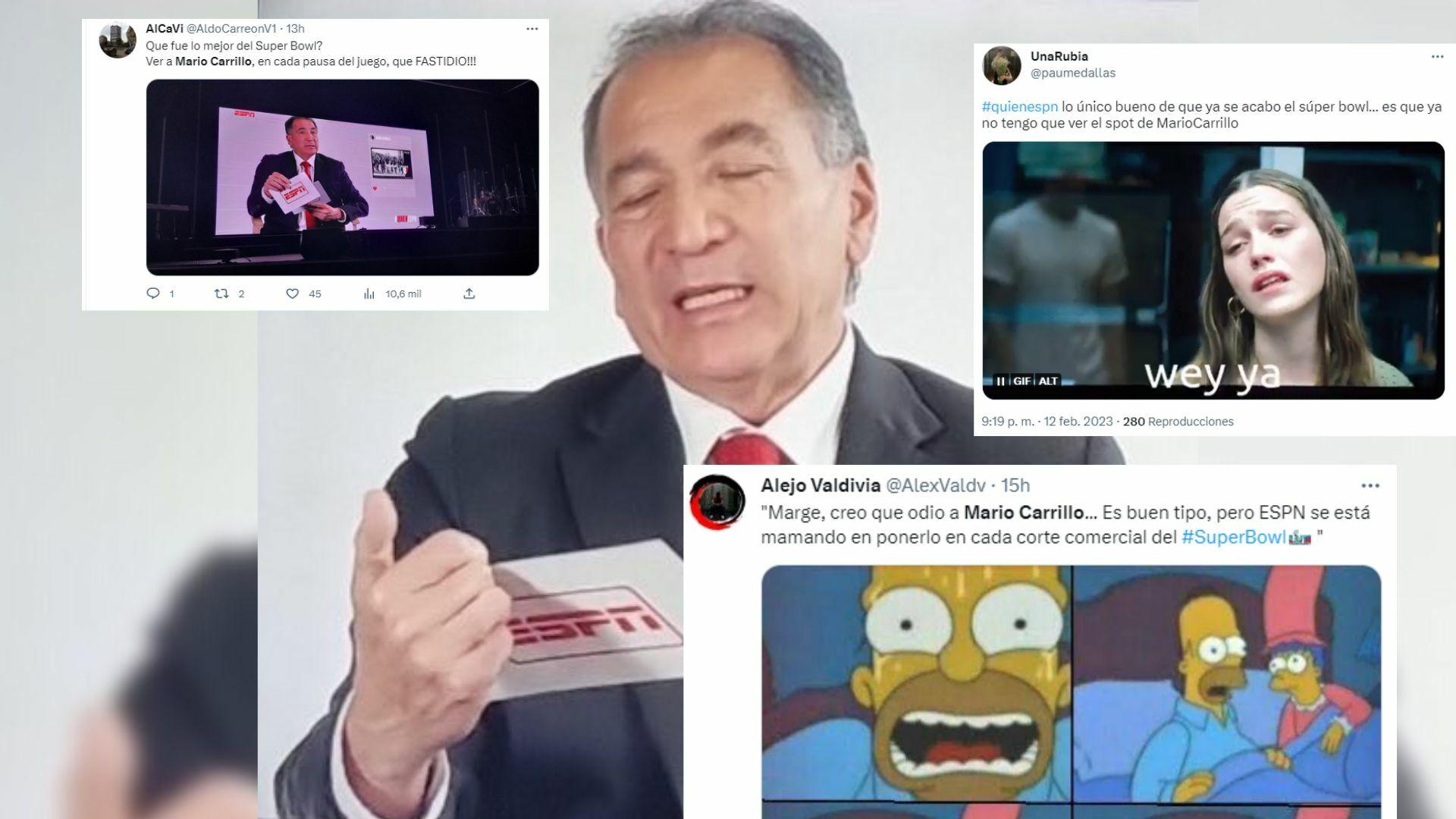 Durante el Super Bowl LVII, en la transmisión de ESPN, un comercial en el que Mario Carrillo anunciaba un partido de la Liga MX terminó por causar molestia en los aficionados al futbol americano que disfrutaban de la final entre los Eagles y los Chiefs.