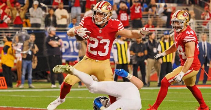 Detroit Lions 24-24 San Francisco 49ers: Anotación de Christian McCaffrey