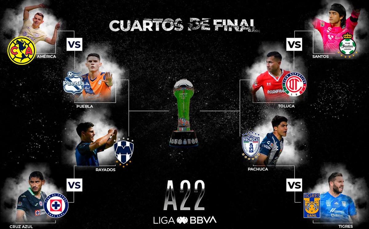 Destaca que América y Cruz Azul, los dos “Equipos Grandes” que están en la Fiesta Grande, jugarán los mismos días (miércoles y sábado) contra el Puebla y Rayados del Monterrey, respectivamente, con la diferencia de que La Máquina será local en el Estadio Azteca en la Ida contra los norteños, mientras que América recibirá la Vuelta en el Coloso ante los poblanos.