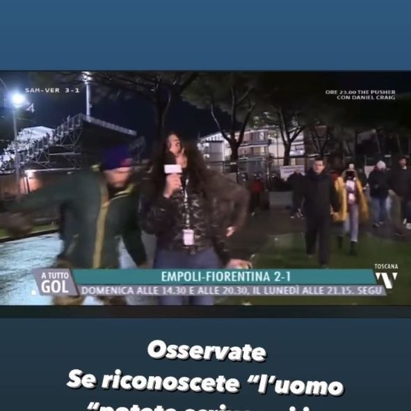 ITALIA — Una reportera italiana de la televisión local Toscana TV fue importunada e incluso recibió fue tocada en pleno directo al término del partido de futbol que enfrentó anoche al Empoli contra Fiorentina, lo que suscitó hoy la indignación y condena.