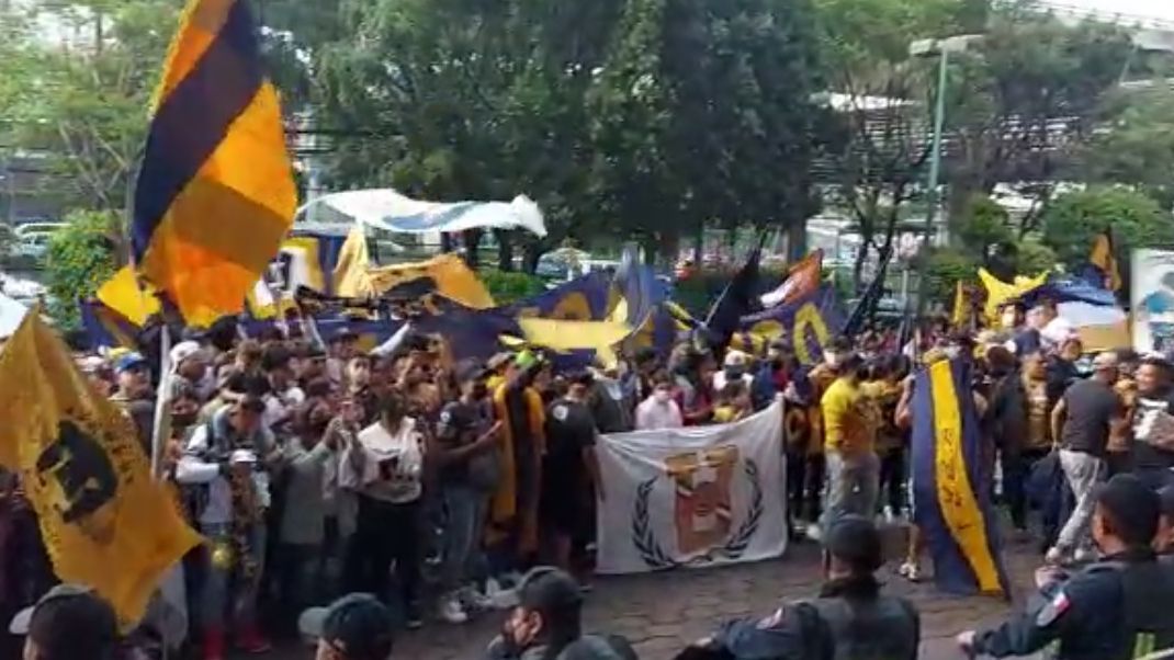 “¡Cómo no te voy a querer…”, empezó a sonar cuando el plantel de Pumas bajó a liberar la presión con los suyos, “Si mi corazón azul es y mi piel dorada, siempre te querre”, siguió al canto de los aficionados del Club Universidad Nacional.