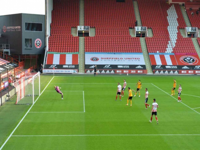 Raúl Jiménez inició encendido la temporada 2020-2021 de la Liga Premier, pues apenas a los tres minutos de comenzado el duelo entre el Wolverhampton y el Sheffield United, el delantero mexicano mandó el esférico al fondo de las redes rivales para poner a los Wolves arriba en el marcador.