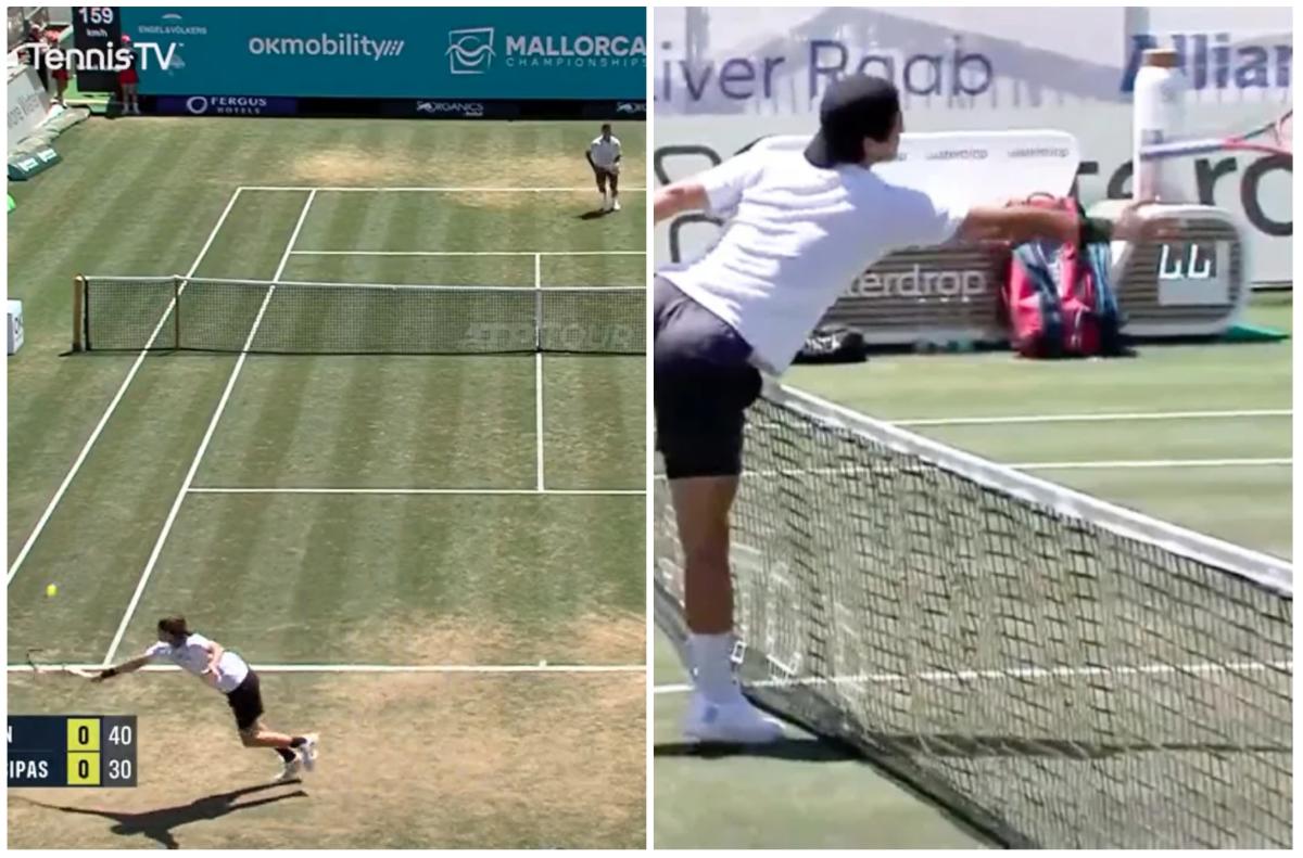 Uno de los últimos torneos de preparación para Wimbledon es el ATP 250 de Mallorca que se está disputando entre este 20 y 26 de junio en las pistas de hierba del Country Club de Santa Ponsa. Stefanos Tsitsipas es el cabeza de serie número 2 y este día 23 se metió en las semifinales al vencer al estadounidense Marcos Giron por 6-7 (5), 6-4 y 6-3 en un partido en el que realizó uno de los puntos más sorprendentes que se han visto recientemente en el mundo del tenis.