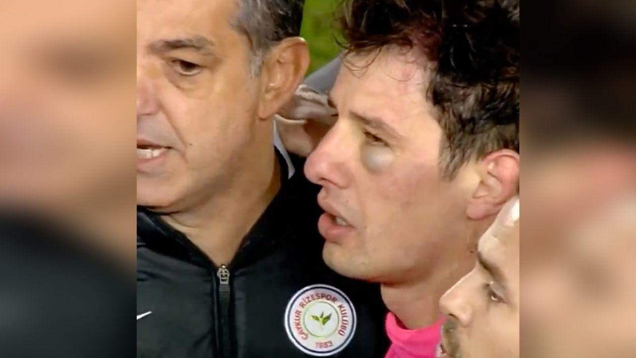 Una vez derribado en el suelo, el árbitro trató de protegerse pero recibió varias patadas, propinadas por al menos otros dos hombres, presumiblemente miembros del equipo local. Según medios turcos, Halil Umut Meler, terminó con el ojo izquierdo afectado y fue trasladado a un hospital.