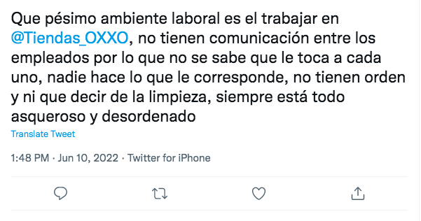 Para ello, escribió algunos tweets en donde habla, desde su perspectiva, del por qué en Oxxo no hay un buen ambiente laboral, afirman que no tienen orden ni limpieza, y que “no es lo que te pintan en capacitación”.