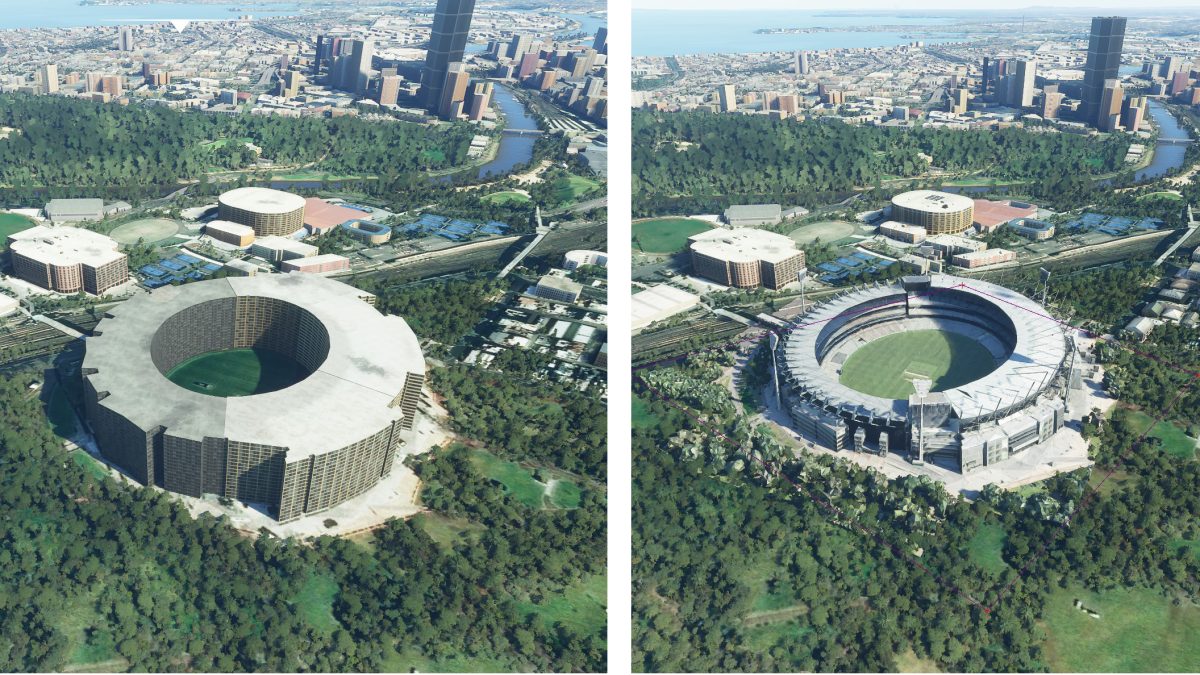 El estadio Melbourne Cricket Ground de Melbourne, en Australia, antes y después Imagen : u/High_Frame_Rates (Reddit)