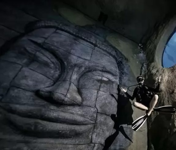 Esta cuenta con 45.4 metros de profundidad y varios niveles en los que, por ejemplo, los visitantes pueden explorar los restos de un barco abandonado, una serie de cuevas o hasta una representación de ruinas mayas.
