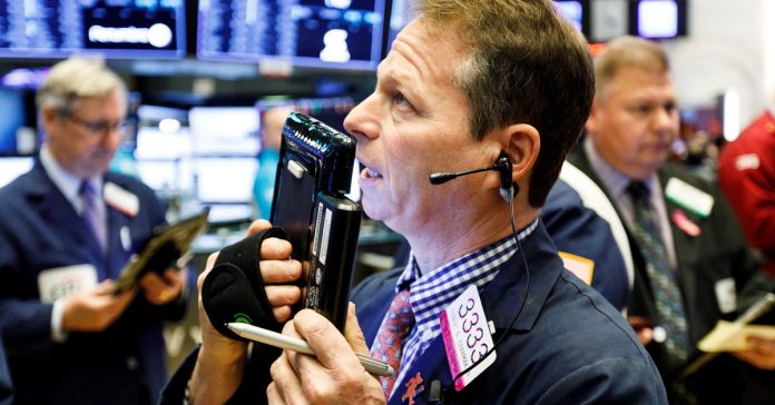 Agentes de bolsa realizan su trabajo en el parque de Nueva York, Estados Unidos. EFE/Justin Lane
