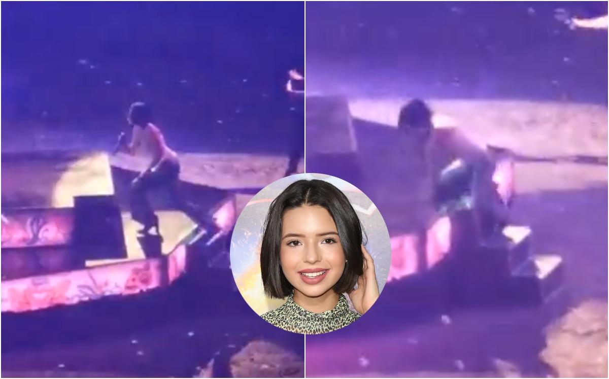 En el video que ya se ha viralizado, se observa a Ángela interpretar el famoso tema Como la Flor (que hiciera famoso Selena), a la hora de la caída; Ángela se muestra feliz y disfrutando el tema, pero fue en el momento que decidió subir al escenario que sufrió el leve percance.