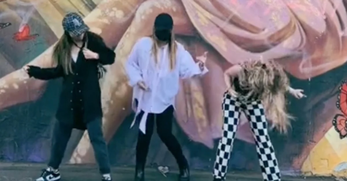 En el video se observa a las tres mujeres, haciendo pasos simultáneos y riendo. La Gaviota está en medio y porta una gorra negra cubrebocas, un pantalón oscuro y una blusa rosada. Atrás se encuentra un amplio mural con colores vivos y muchas mariposas.