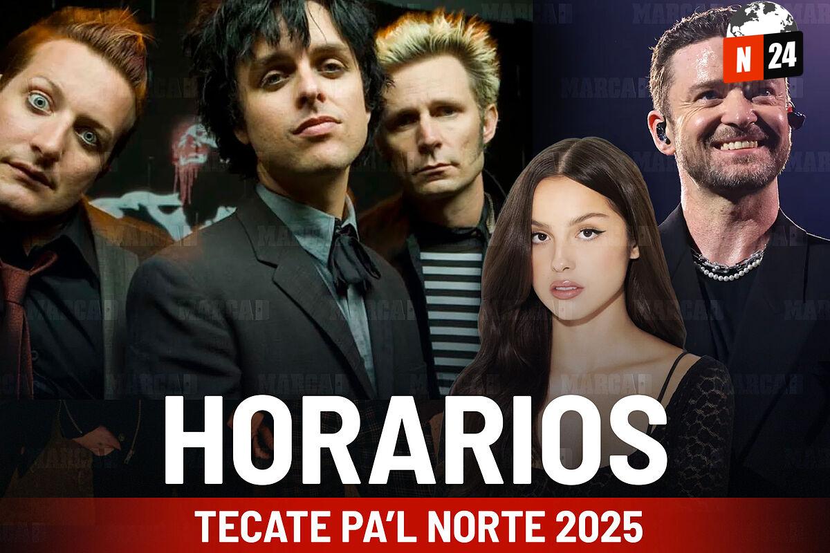 El viernes 4 de abril, Green Day cerrará la noche en el escenario principal a las 23:55 hrs, mientras que The Chainsmokers y Seventeen ofrecerán shows previos. El sábado 5, Justin Timberlake marcará el inicio de la madrugada (00:00 hrs) y Fall Out Boy promete un espectáculo energético. El domingo 6, Olivia Rodrigo será la gran atracción a las 22:30 hrs.