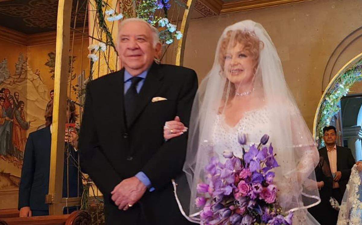 En las fotos se observa a Joana Benedek caminar por el pasillo central tomando del brazo al productor, con el que trabajó en telenovelas como Hasta que el dinero nos separe, Dos hogares o Mujeres engañadas, proyectos en los que entablaron una inquebrantable y cercana amistad.