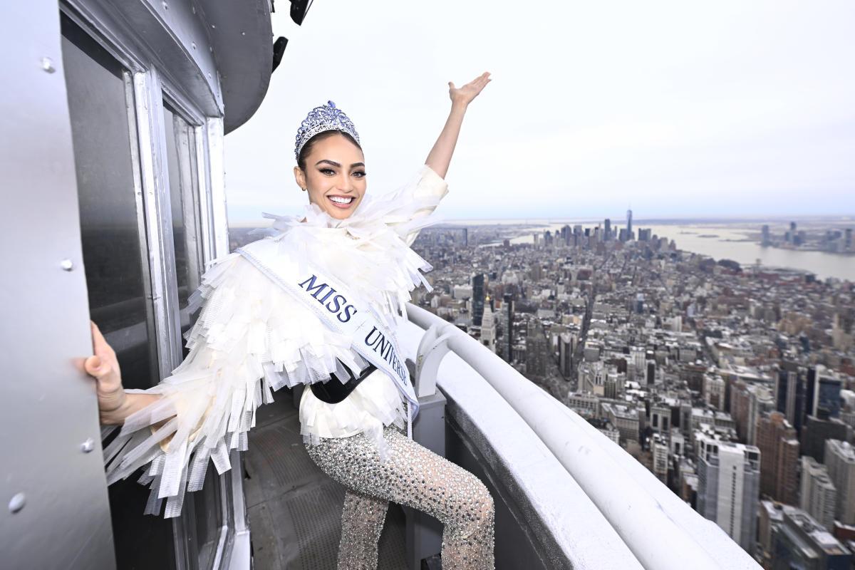 NEW YORK, NEW YORK – JANUARY 17: Miss Universe 2022 R’Bonney Gabriel visits The Empire State Building on January 17, 2023 in New York City. (Photo by Roy Rochlin/Getty Images for Empire State Realty Trust)