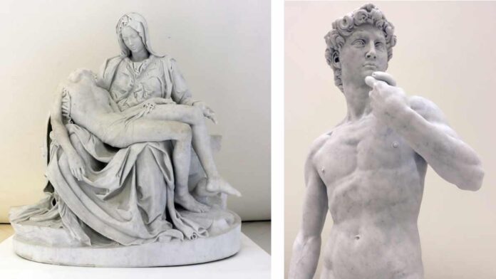 Esta versión en mármol de Carrara de una de las esculturas más destacadas del Renacimiento está acompañada de “La Piedad”, obra que, según Alfonso Miranda, director de Museo Soumaya, Fundación Carlos Slim, es un “símbolo de humildad”.