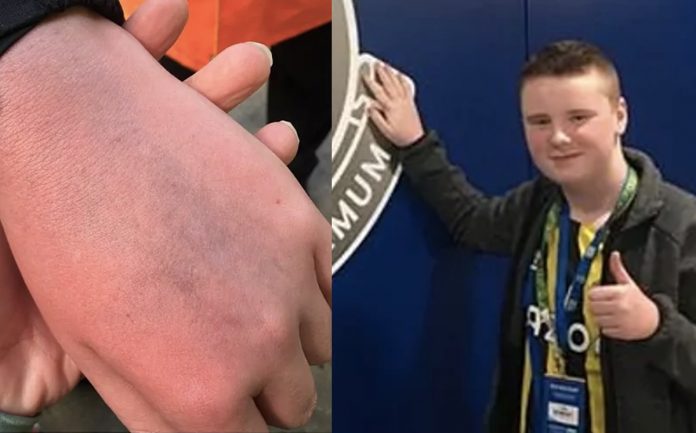 “Agredió y magulló” al aficionado de 14 años cuando le tumbó el teléfono móvil, luego de que lo grabara sangrando de su pierna.
