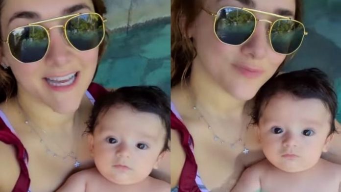 A través de sus historias de Instagram, la estrella de la televisión compartió un video en el que presumió lo bien que se la está pasando su primogénito, quien dijo, está fascinado en la alberca.