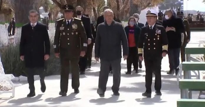 Este sábado, en el marco del 109 aniversario de la fundación del Ejército Mexicano, el presidente Andrés Manuel López Obrador (AMLO) estuvo presente en Ramos Arispe, Coahuila, acompañado de varios funcionarios, entre ellos el titular de la Secretaría de la Defensa Nacional (Sedena) Luis Crescencio Sandoval González, Miguel Ángel Riquelme Solís, gobernador del estado, e integrantes de las fuerzas armadas.