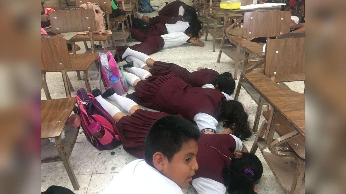 En uno de los videos se ve cómo una maestra intentó tranquilizar a sus alumnos, a quienes les pidió que se tiraran al piso y guardaran la calma.
