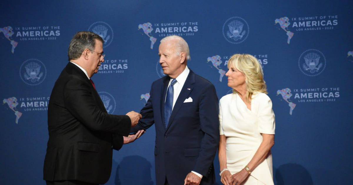 Con un apretón de manos, el canciller de México, Marcelo Ebrard tuvo su primer encuentro en la Cumbre de las Américas con el presidente de Estados Unidos, Joe Biden y su esposa Jill Tracy.