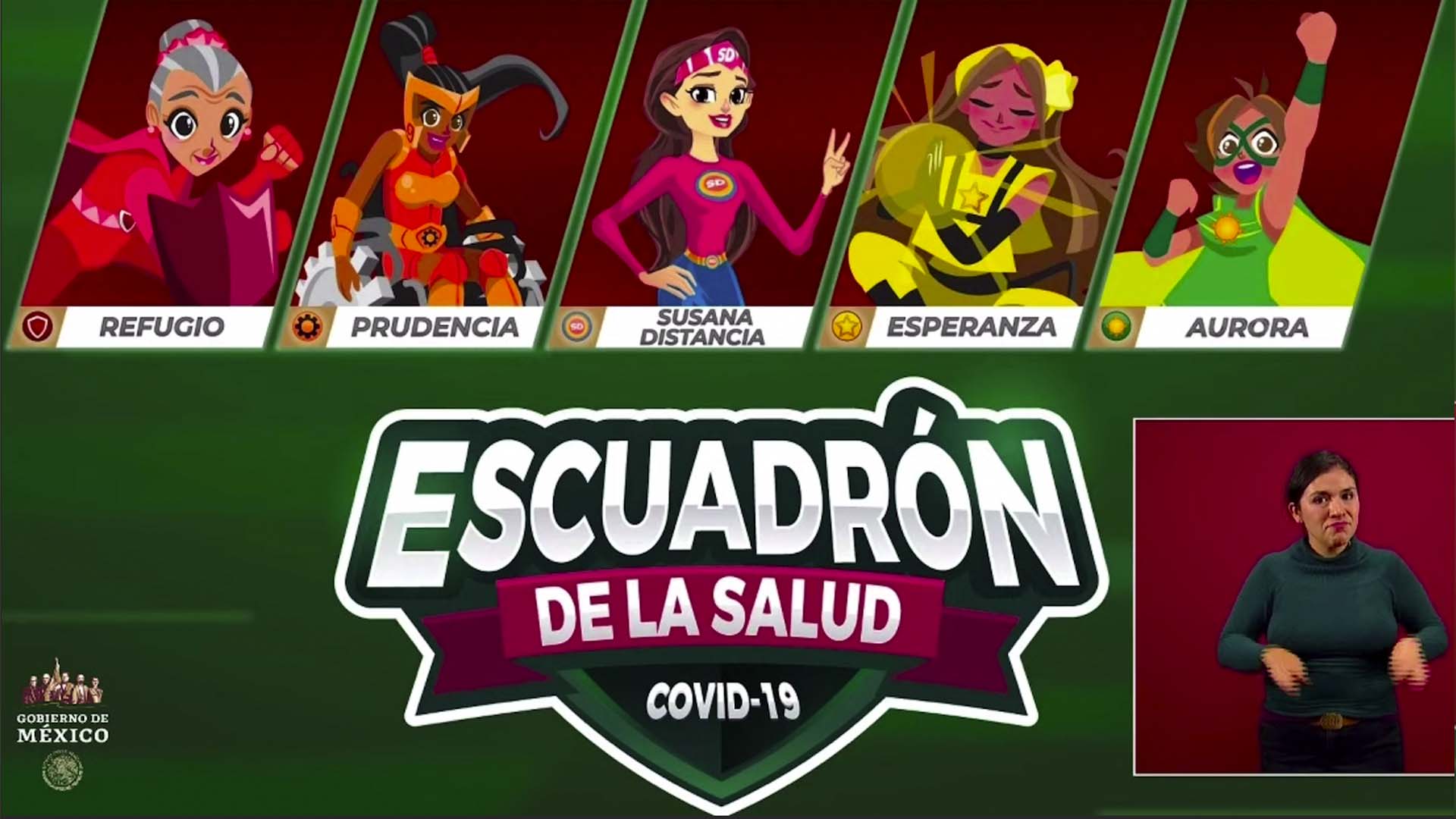 Susana Distancia ya no está sola en la batalla contra la COVID-19, ahora tiene a su lado al Escuadrón de la Salud quienes representan cada uno de los colores del semáforo de riesgo epidémico. El equipo fue presentado esta tarde durante la conferencia vespertina por el doctor Ricardo Cortés quien detalló acerca de sus poderes y características.