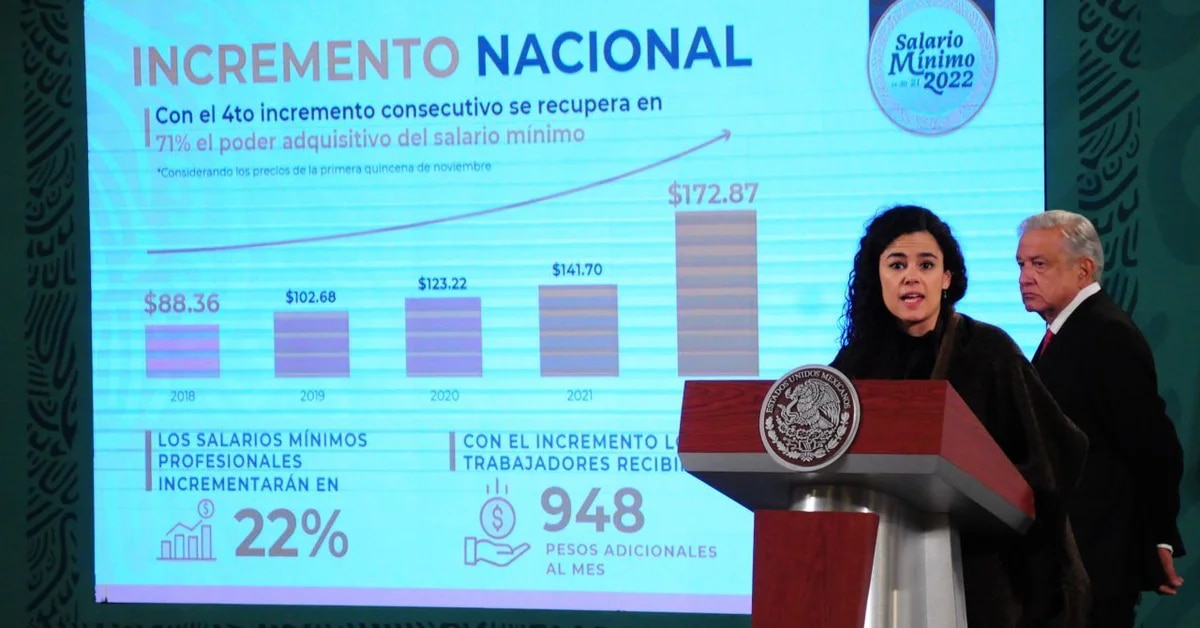 De acuerdo con el Consejo de Representantes de la Comisión Nacional de Salarios Mínimos, el pasado 1ro de diciembre del 2021, se acordó de manera unánime un incremento en los salarios mínimos generales y profesionales de un 22%. El incremento en el ingreso se verá reflejado en las 61 profesiones, oficios y trabajos especiales a partir de este sábado.