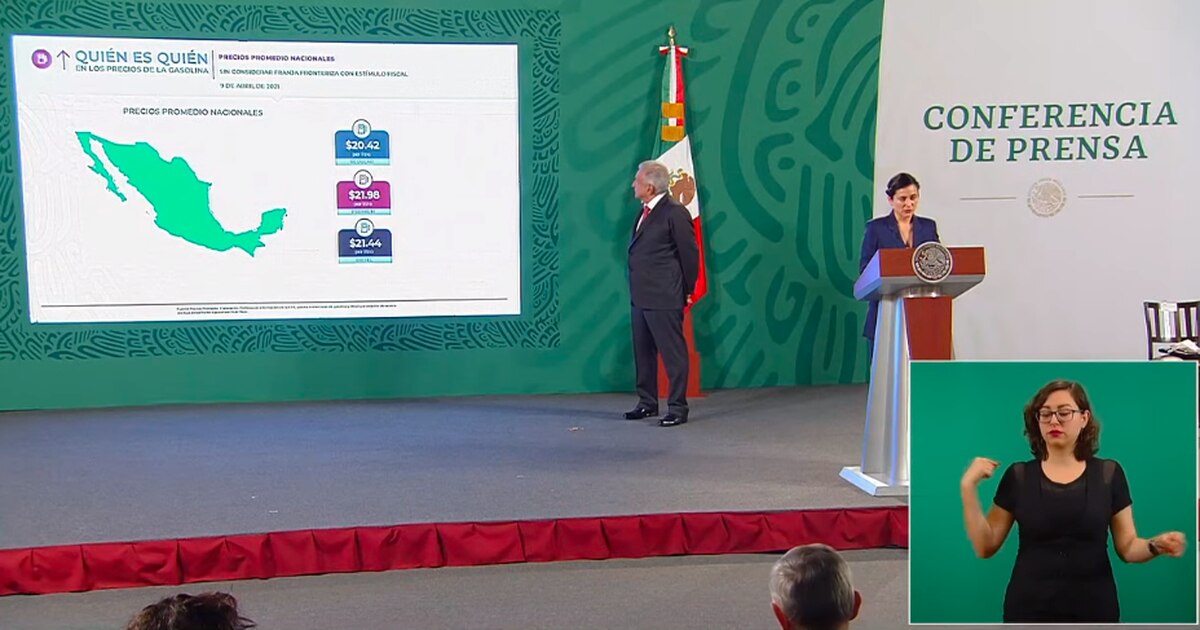 Berenice Romero, encargada de Profeco, presenta los precios promedio de los combustibles al 9 de abril de 2021. (YouTube Gobierno de México)