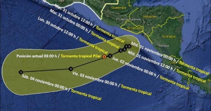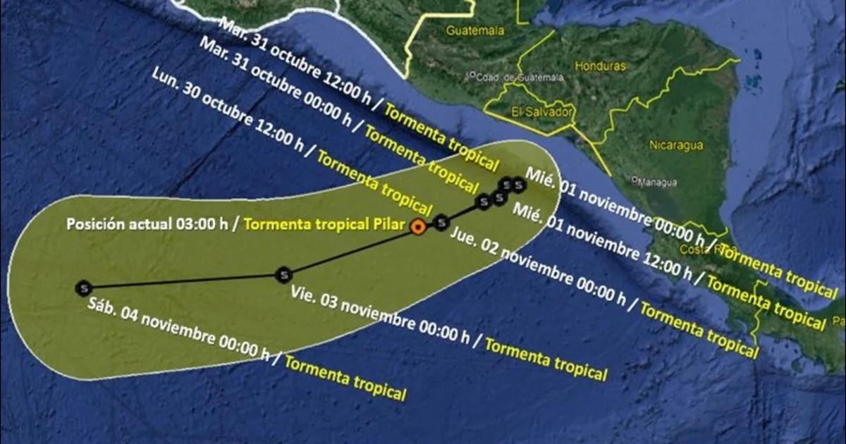 Esta sería la probable trayectoria de la Tormenta Tropical Pilar en los próximos días. Foto: SMN