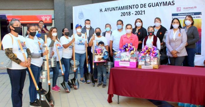En el Día Internacional para Erradicar la Violencia Contra las Mujeres, el Ayuntamiento de Guaymas, Sonora, entregó palas y cubetas a mujeres que buscan a familiares desaparecidos.