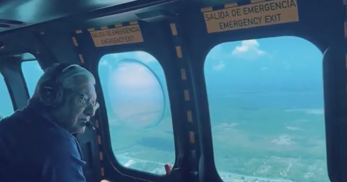 AMLO sobrevoló sobre la zona de construcción del Tren Maya (Video: Twitter/@lopezobrador)