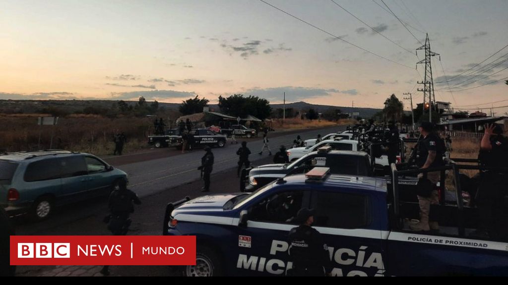 Fuente de la imagen, Secretaría de Seguridad de Michoacán Pie de foto, La Secretaría de Seguridad de Michoacán desplegó este domingo junto a Ejército y Guardia Nacional, un dispositivo de seguridad para hallar a los responsables del crimen.
