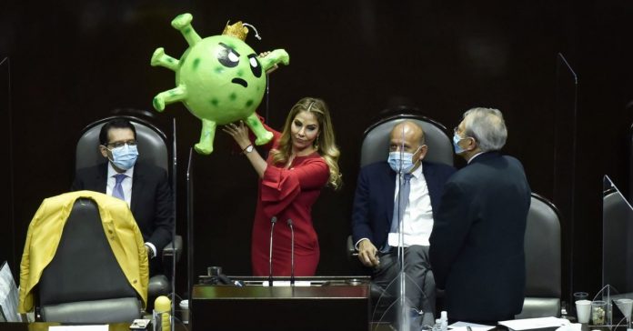 Para que “se dé cuenta de las muertes que están cayendo sobre él”: diputada del PRD regaló una piñata de coronavirus a López-Gatell