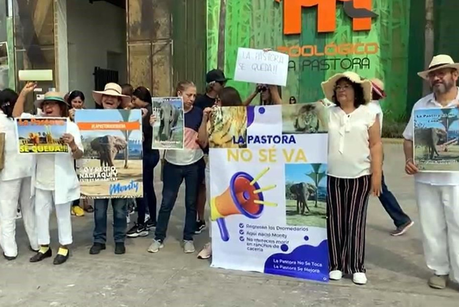Monterrey, NL.- Un grupo de ciudadanos, preocupados por el futuro del zoológico La Pastora, se manifestó hoy frente a las instalaciones del Zoológico La Pastora en el municipio de Guadalupe, NL, exigiendo la permanencia del Zoológico, y la no reubicación de animales a ranchos de cacería, debido a las obras para la construcción de la sede de partidos de fútbol del Mundial 2026.
