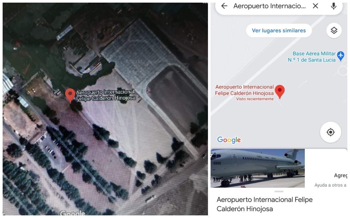 Por error o de manera deliberada con fines desconocidos hasta el momento, la localización del nuevo aeropuerto Felipe Ángeles en Google Maps fue etiquetada como “Aeropuerto Internacional Felipe Calderón Hinojosa”.