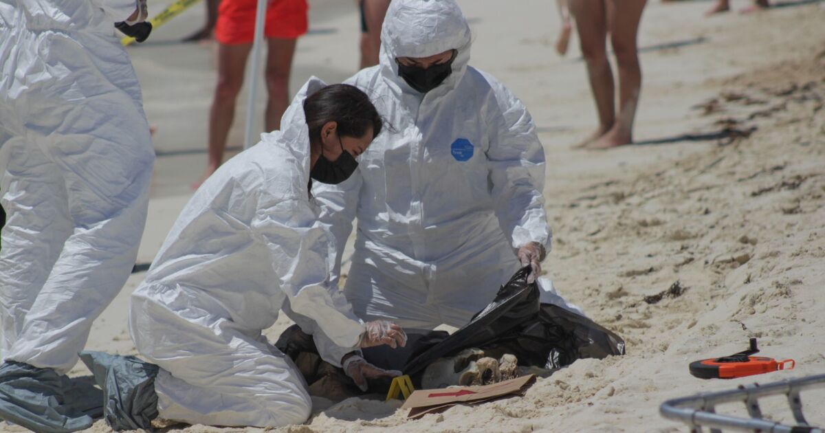 Turistas que se encontraban en playa Gaviotas en Cancún, Quintana Roo, realizaron el hallazgo de restos de un cuerpo humano por lo que de inmediato dieron parte a las autoridades.