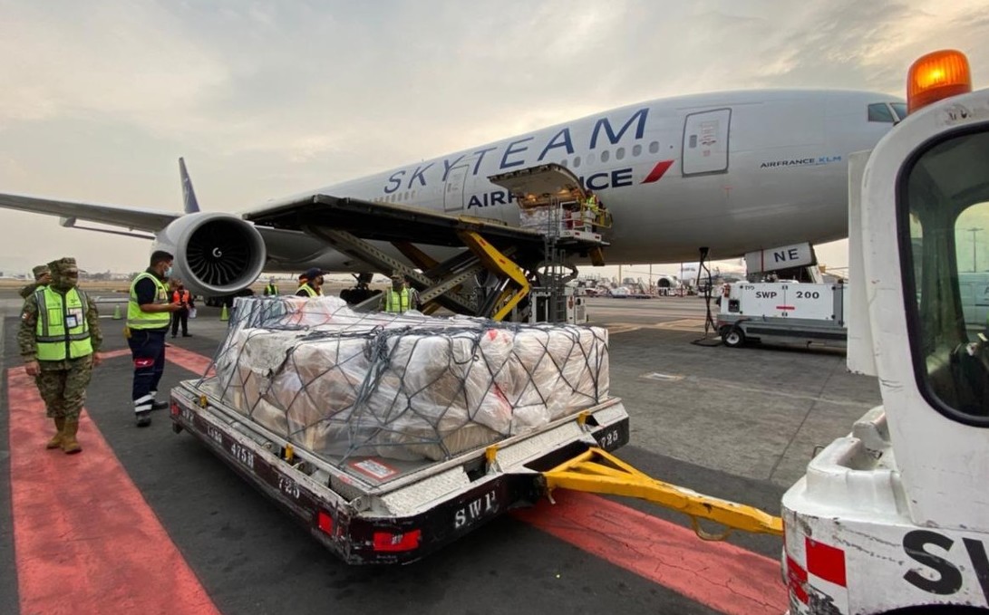 Las vacunas llegaron al filo de las 17.00 horas al Aeropuerto Internacional de la Ciudad de México (AICM) a bordo del vuelo AF9266 de Air France procedente de París, se informó.