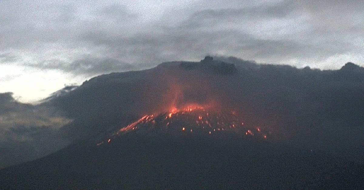 El volcán Popocatépetl tuvo una nueva explosión y arrojó material incandescente (Twitter/ @SkyAlertMx)