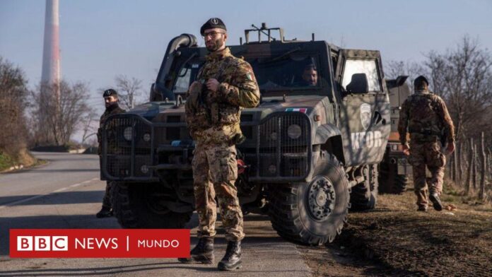 Fuente de la imagen, Getty Images Pie de foto, Tropas de la OTAN vigilan una carretera en Kosovo.