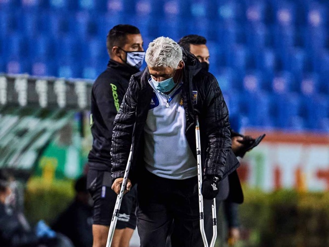 El técnico Ricardo Tuca Ferretti salió con muletas a la cancha del Estadio Universitario para el partido contra Toluca, correspondiente a la jornada 9 del Clausura 2021 de la Liga MX.