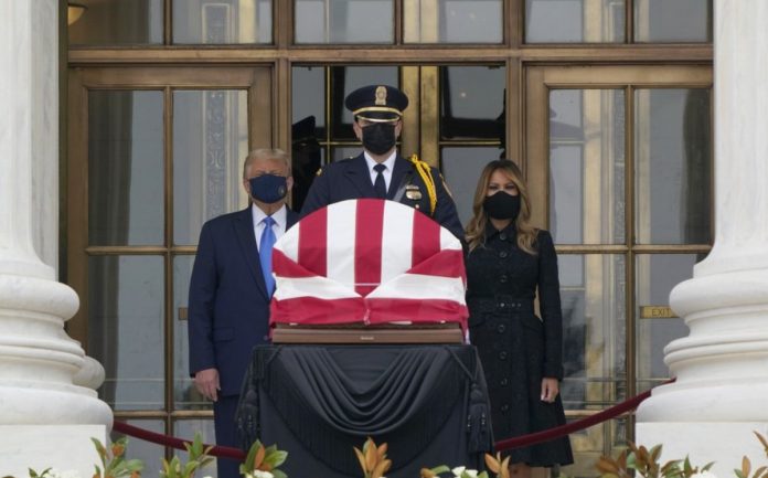 Antes de que Trump saliera de su vehículo, una multitud de asistentes lo recibió con abucheos y gritando “voten para sacarlo”, en referencia a las próximas elecciones del 3 de noviembre, y “honren su deseo”, en alusión a la última voluntad de Ginsburg, que pidió que sea el gobierno resultante de los comicios quien nombre a su reemplazante.
