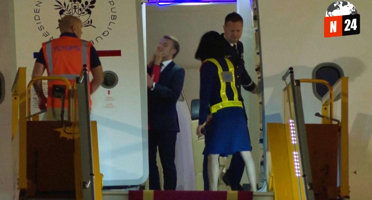 El momento clave muestra a Brigitte -de quien solo se ven sus brazos- empujando con ambas manos el rostro de Macron cuando la puerta del avión se abría. La reacción del mandatario fue instantánea: una mirada de sorpresa seguida de un rápido cambio a modo “protocolario” para saludar a la prensa.
