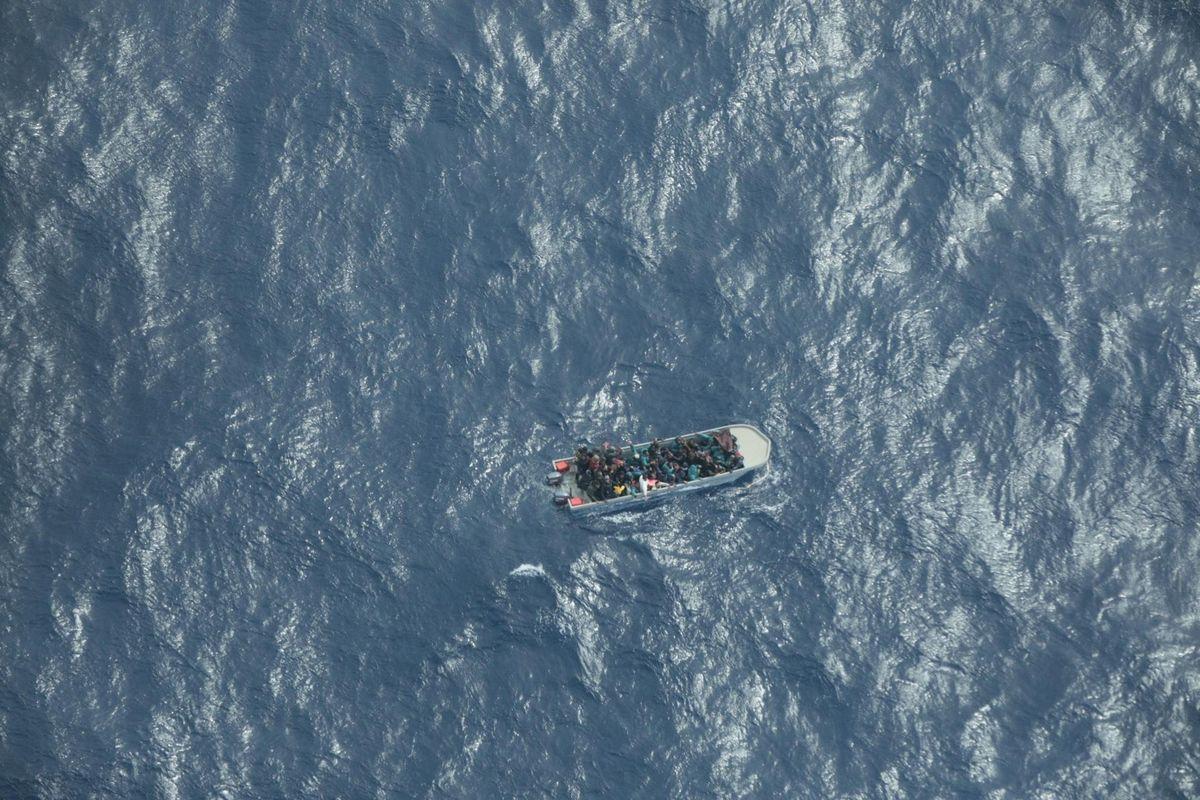 Una barcaza abarrotada de migrantes, en su ruta hacia Italia por el Mediterráneo central, en una imagen del 11 de marzo, cedida por la ONG de rescate Sea Watch.