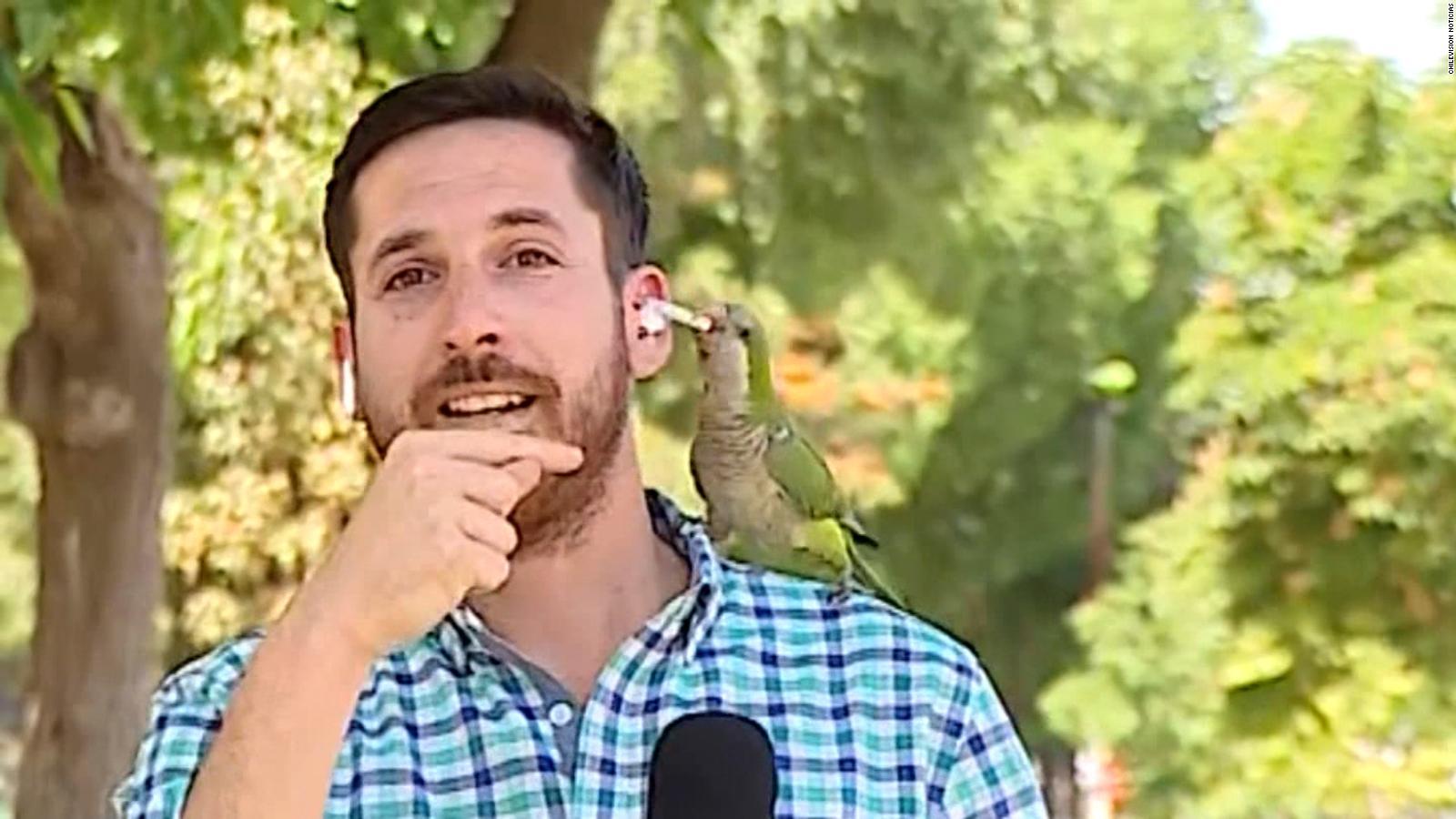 Un delincuente con plumas se llevó uno de los audífonos de un periodista que reportaba en vivo. Si bien logró escapar de inmediato, el loro no fue tan audaz, ya que dejó pruebas del robo. Mira el momento exacto de este insólito hurto.