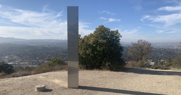 California, 3 de diciembre (RT).- Un monolito metálico similar a los encontrados anteriormente en el desierto de Utah, en Estados Unidos, y cerca de la ciudad rumana de Piatra Neamt, apareció en el estado de California.