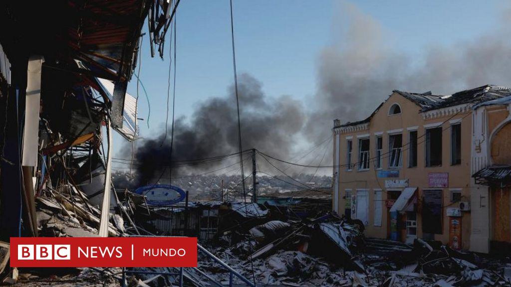 Fuente de la imagen, Reuters Pie de foto, En la ciudad de Bajmut, epicentro actual de la guerra en Ucrania, los bombardeos no pararon a pesar del cese al fuego declarado por Vladimir Putin.