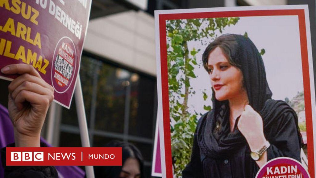 Fuente de la imagen, Getty Images Pie de foto, Una manifestatne sostiene la foto de Mahsa Amini durante una protesta en Turquía el mes pasado.
