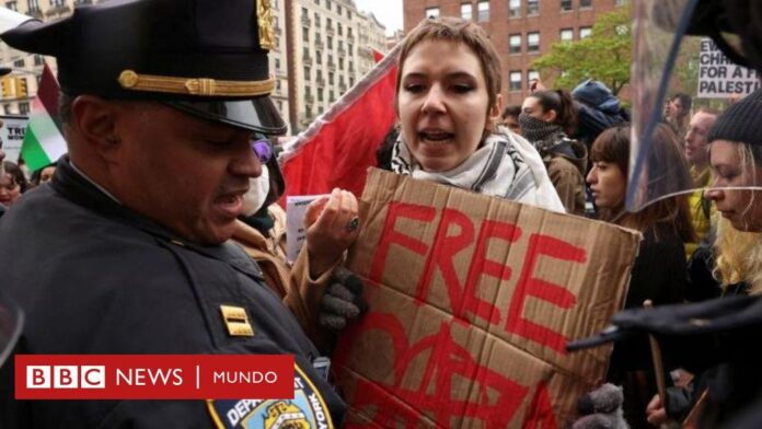 Fuente de la imagen, EPA Pie de foto, Los manifestantes continúan acampando en los predios de la Universidad de Columbia.