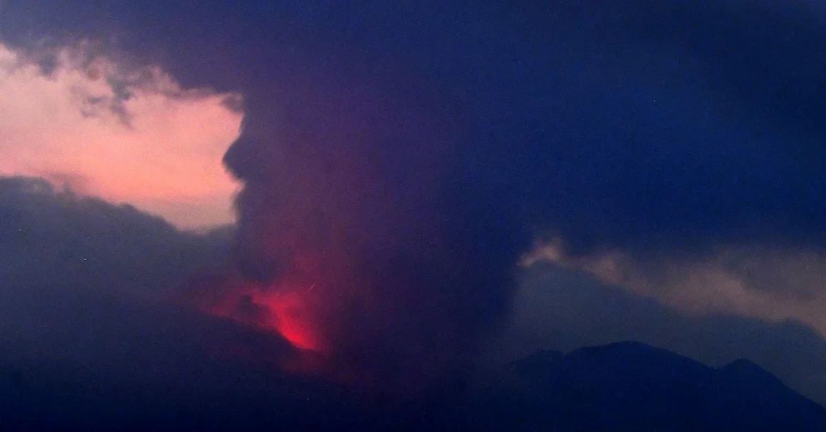 Las imágenes de video de la erupción del domingo mostraron lo que parecía ser una masa roja que fluía por un lado del volcán, con proyectiles rojos disparándose mientras el humo, difícil de ver en la oscuridad, se elevaba, comentó la agencia Reuters.