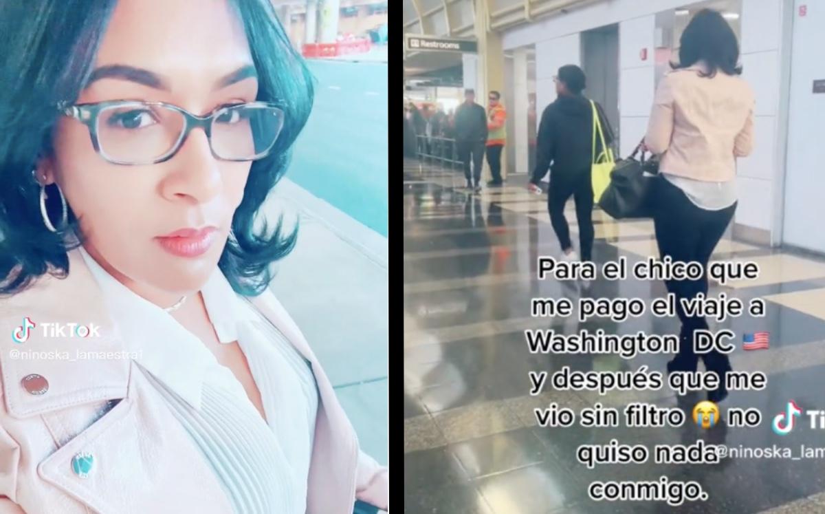 La usuaria -@ninoska_lamaestra1- identificada como Ninoska Rodríguez en TikTok, explicó que conoció a un hombre por internet , él le pagó un viaje a Washington y cuando llegó el momento de verse cara a cara él la plantó.